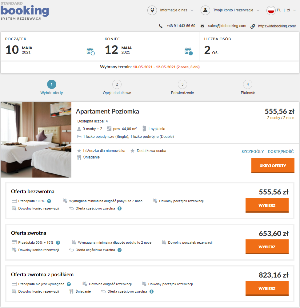 • 4 proste kroki składania rezerwacji (Wybór oferty -> Opcje dodatkowe -> Potwierdzenie -> Płatność),